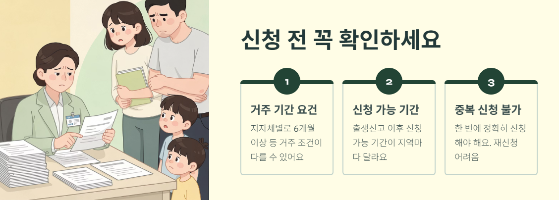 - 지자체별 거주 기간 요건이 다를 수 있습니다. (예: 6개월 이상 등)