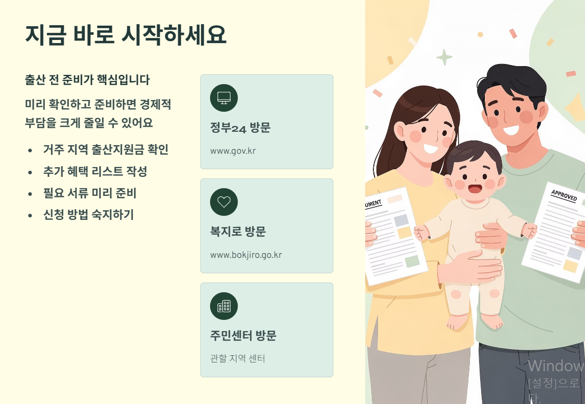 출산 전에 미리 확인하고 준비하면 경제적 부담을 줄이고 다양한 혜택을 받을 수 있습니다. 오늘 소개한 방법으로 빠르게 신청하고 모든 혜택을 놓치지 마세요!