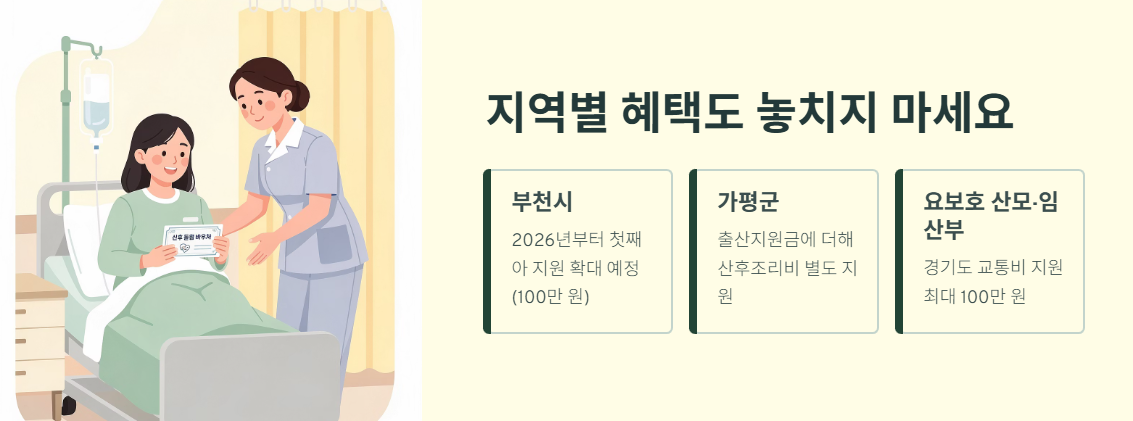 또한 일부 지역에서는 산후조리비, 첫만남 이용권, 교통비 지원 등 추가 혜택을 제공하는 경우도 있어 미리 확인해야 합니다.