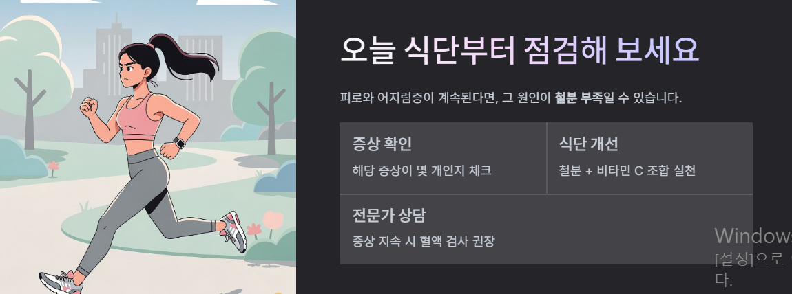 철분 부족은 단순한 영양 문제가 아니라 일상생활의 질을 크게 떨어뜨리는 원인이 됩니다.