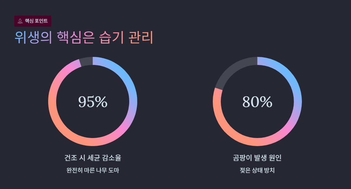 즉, 문제는 나무 자체가 아니라 젖은 상태로 방치하는 습관입니다.