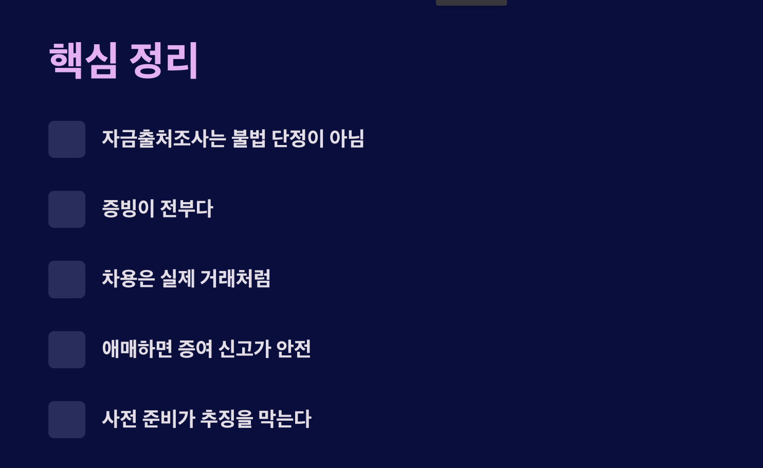 핵심은 단순합니다. 자금의 흐름을 증빙으로 설명할 수 있느냐입니다. 불안해하기보다는 지금이라도 계좌 정리, 소득 증빙, 가족 간 거래 정리를 시작하는 것이 가장 현명한 대응입니다.