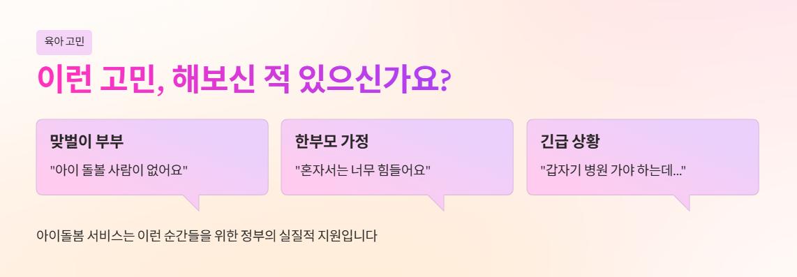아이를 키우는 부모라면 누구나 한 번쯤 고민해 봤을 고민 — “돌봄 서비스 어떻게 신청하지?”