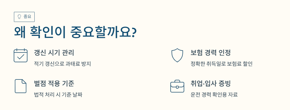 운전면허 취득일/발급일 조회는 어렵지 않습니다. 다만 이를 모르고 지나치면 갱신, 벌점, 보험 경력 인정 등에서 불이익이 발생할 수 있습니다.