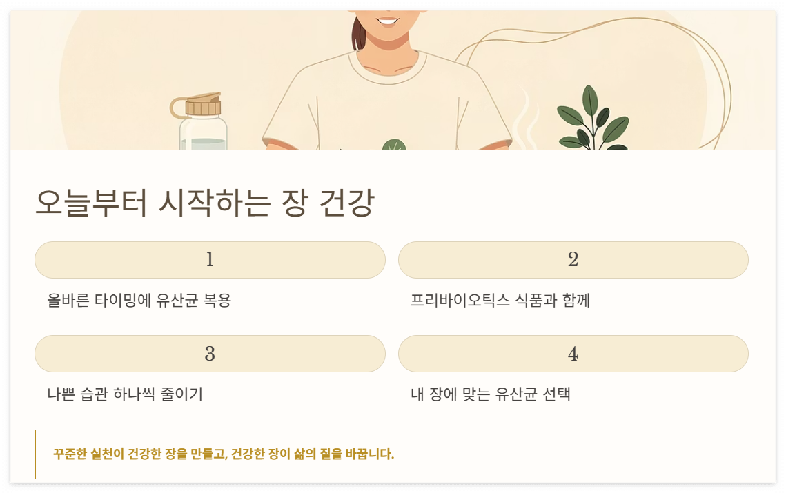 유산균은 장 건강을 지키는 가장 기본적인 관리 수단이지만, 올바른 섭취 방법과 생활습관이 함께하지 않으면 효과를 기대하기 어렵습니다.