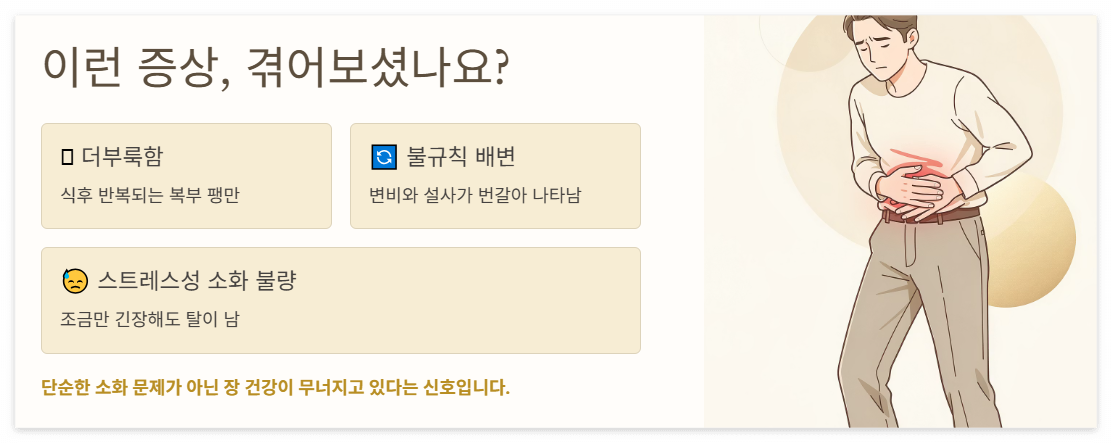 이런 증상이 반복된다면 단순한 소화 문제를 넘어 장 건강이 무너지고 있다는 신호일 수 있습니다. 최근 많은 사람들이 장 건강을 위해 유산균을 찾는 이유도 여기에 있습니다.