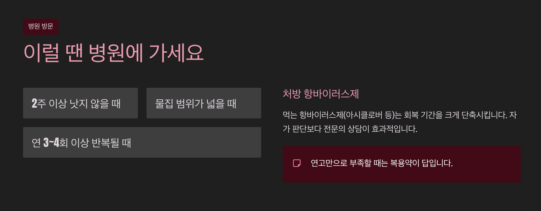 이 경우에는 먹는 항바이러스제를 처방받는 것이 회복 속도를 크게 줄여줍니다.