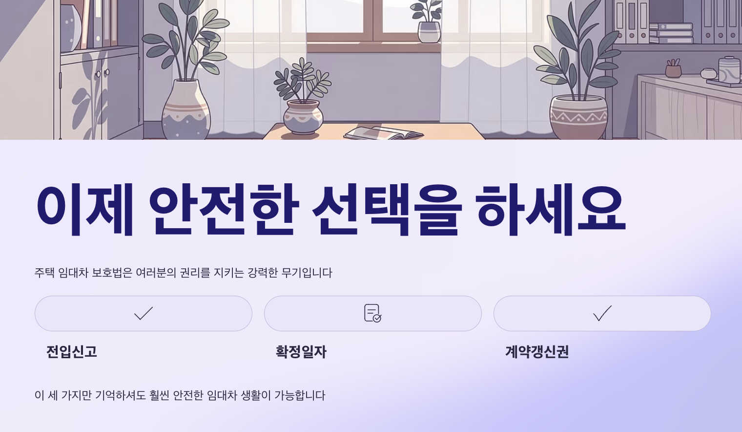 이 글을 통해 기본 개념만 정확히 이해하고 실천하신다면, 전세와 월세 계약에서도 훨씬 안전한 선택을 하실 수 있을 것입니다.