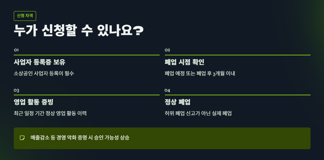 3. 폐업지원금 신청 대상 조건