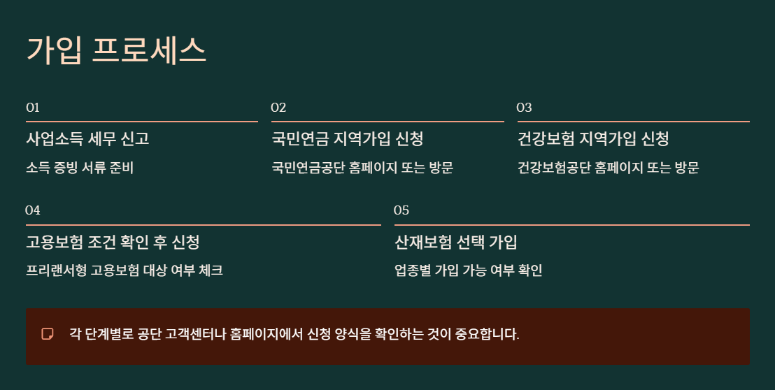 다음은 프리랜서가 직접 보험에 가입하는 기본 단계입니다.