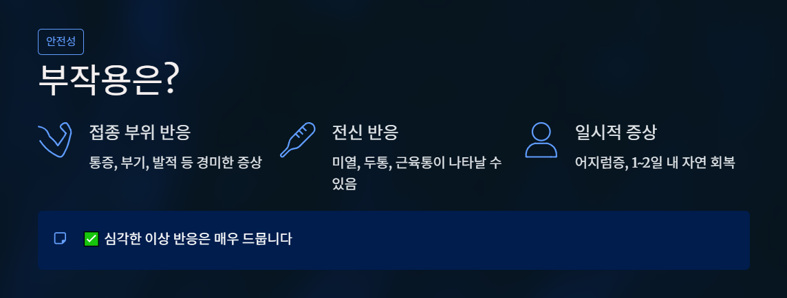 대부분 1~2일 내 자연 회복되며, 심각한 이상 반응은 매우 드뭅니다.