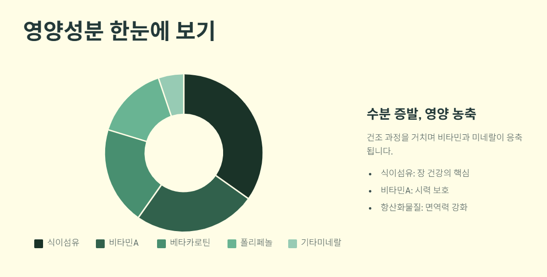 - 식이섬유, 비타민 A, 베타카로틴 풍부