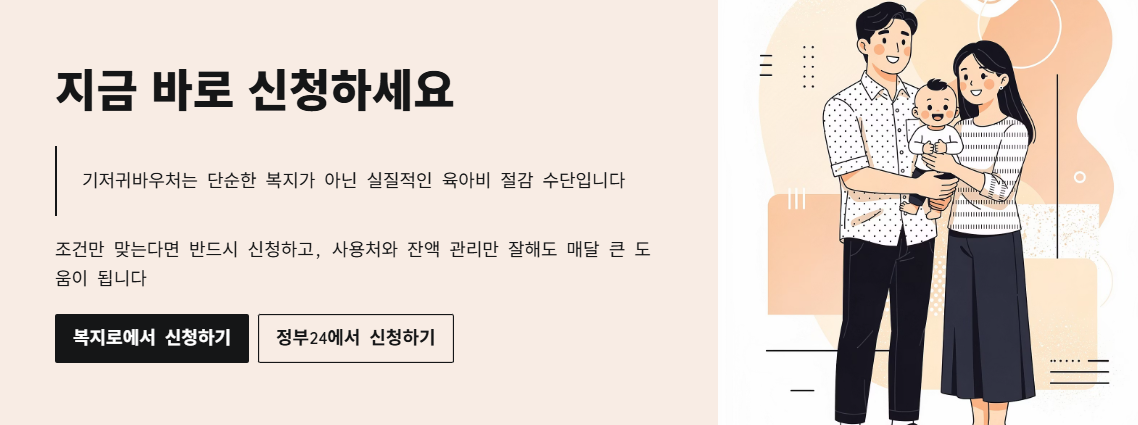기저귀바우처는 단순한 복지가 아니라 실질적인 육아비 절감 수단입니다. 조건만 맞는다면 반드시 신청해야 하며, 사용처와 잔액 관리만 잘해도 매달 큰 도움이 됩니다.