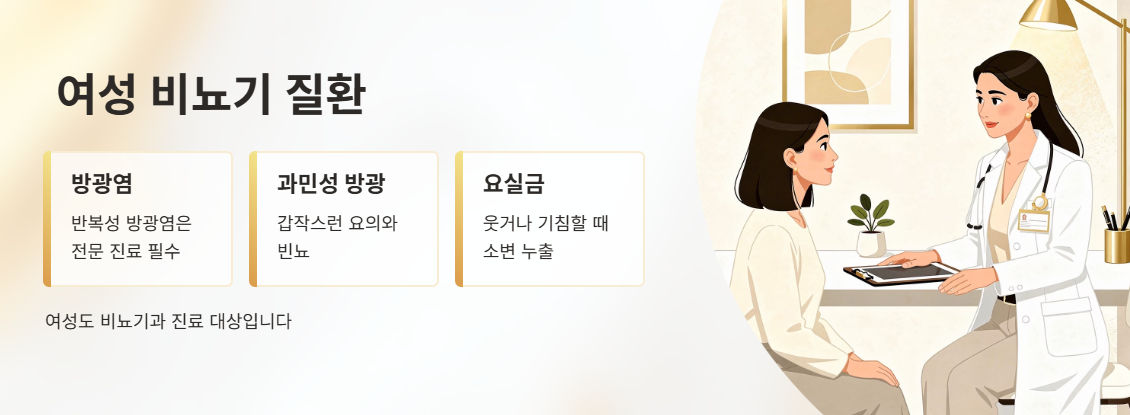 아닙니다. 여성 방광염, 요실금, 과민성 방광도 비뇨기과 진료 대상입니다.