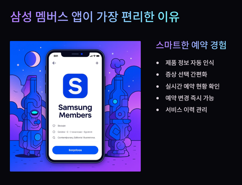스마트폰 사용자의 경우 삼성 멤버스 앱을 통한 예약이 가장 편리합니다. 제품 정보가 자동으로 연동되어 증상 선택이 빠르며, 예약 변경도 간편합니다.