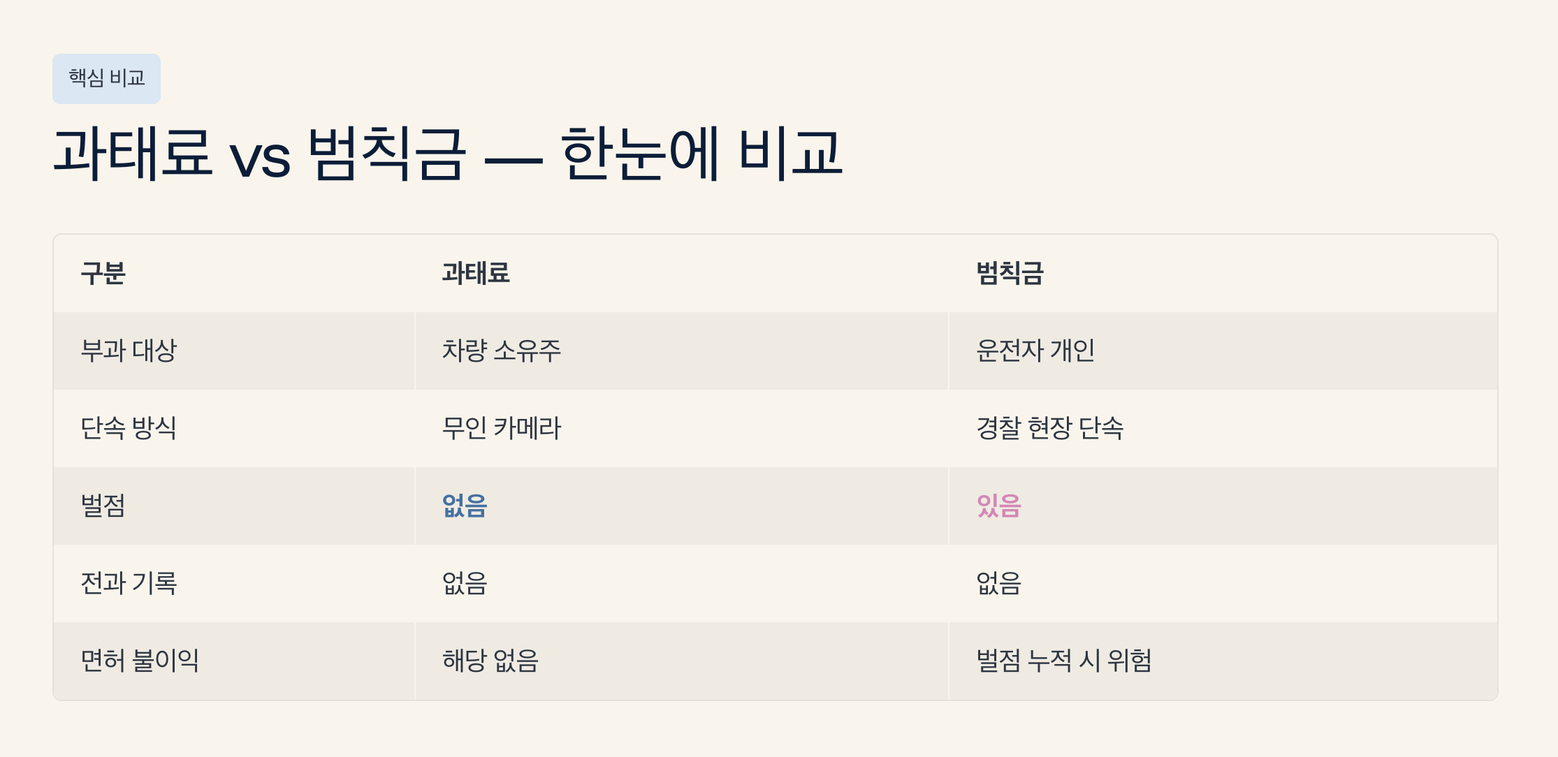 - 벌점 관리가 중요한 경우 → 과태료 유리