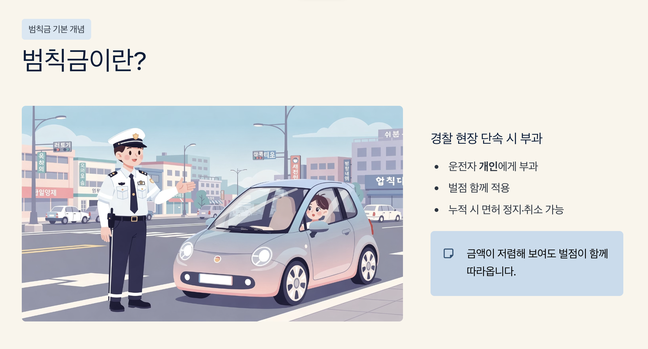 금액만 보면 과태료보다 저렴한 경우도 있지만, 벌점이 함께 부과된다는 점에서 장기적으로는 더 큰 불이익이 될 수 있습니다.