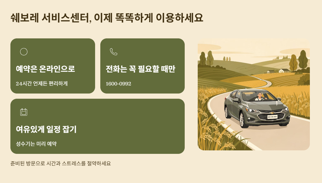 쉐보레 차량을 이용하다 보면 정기 점검이나 갑작스러운 고장으로 서비스센터를 찾게 되는 경우가 많습니다. 하지만 아무 생각 없이 방문했다가 예약이 안 돼서 되돌아오거나, 전화 연결이 되지 않아 답답함을 겪는 경우도 적지 않습니다.