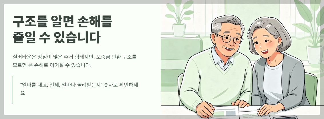 실버타운은 분명 장점이 많은 주거 형태지만, 보증금 반환 구조를 모르고 계약하면 큰 손해로 이어질 수 있습니다.