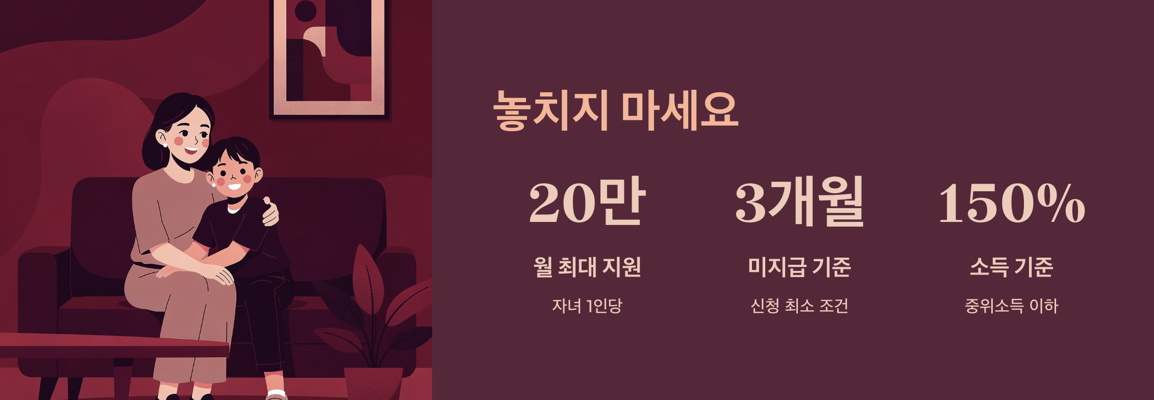 📌 **지원금:** 자녀 1명당 월 최대 20만 원