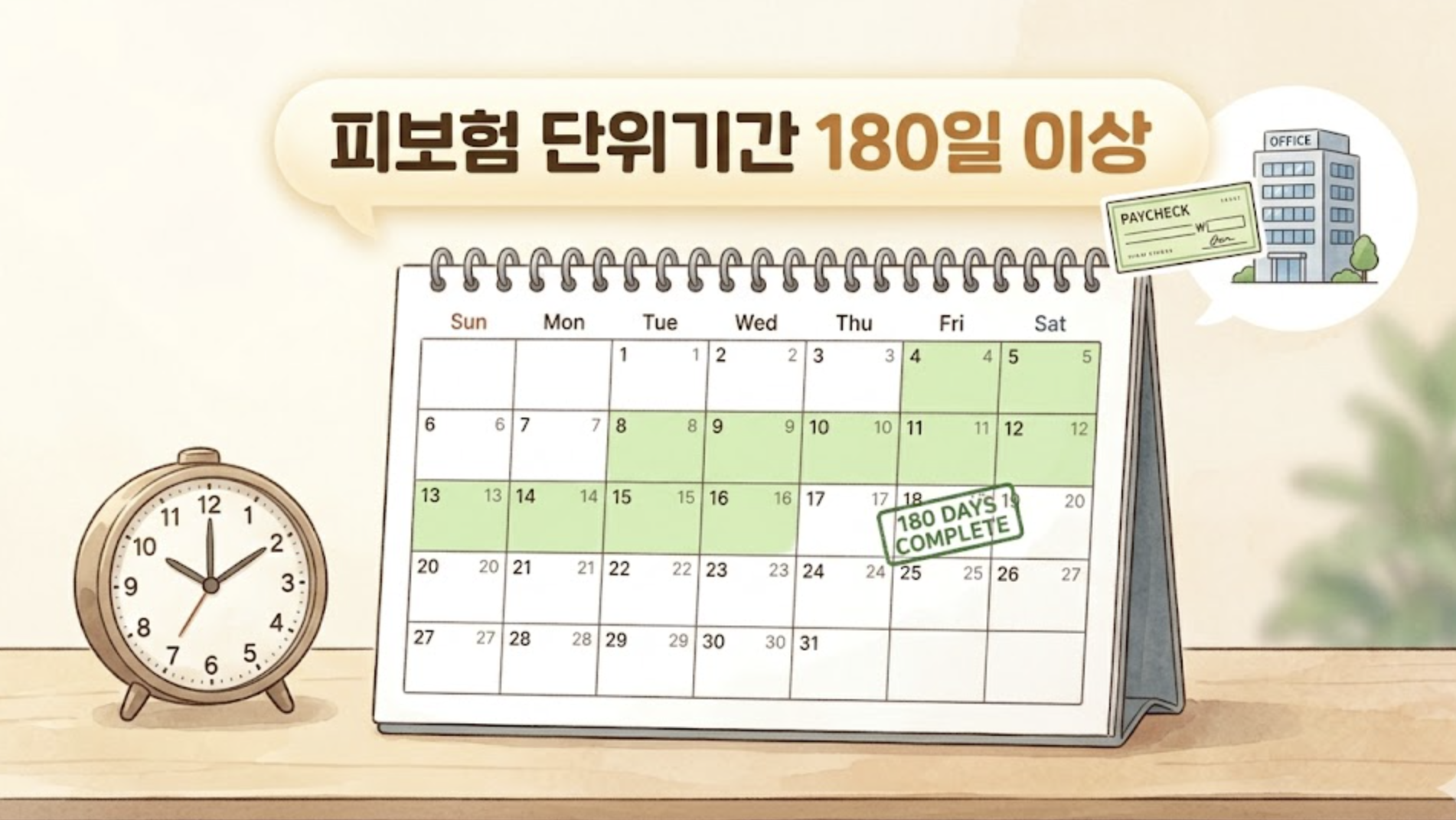 여기서 핵심은 180일 계산 시 주말(무급휴일)은 제외될 수 있으므로, 실제 근무 일수를 꼼꼼히 확인해야 한다는 점입니다.