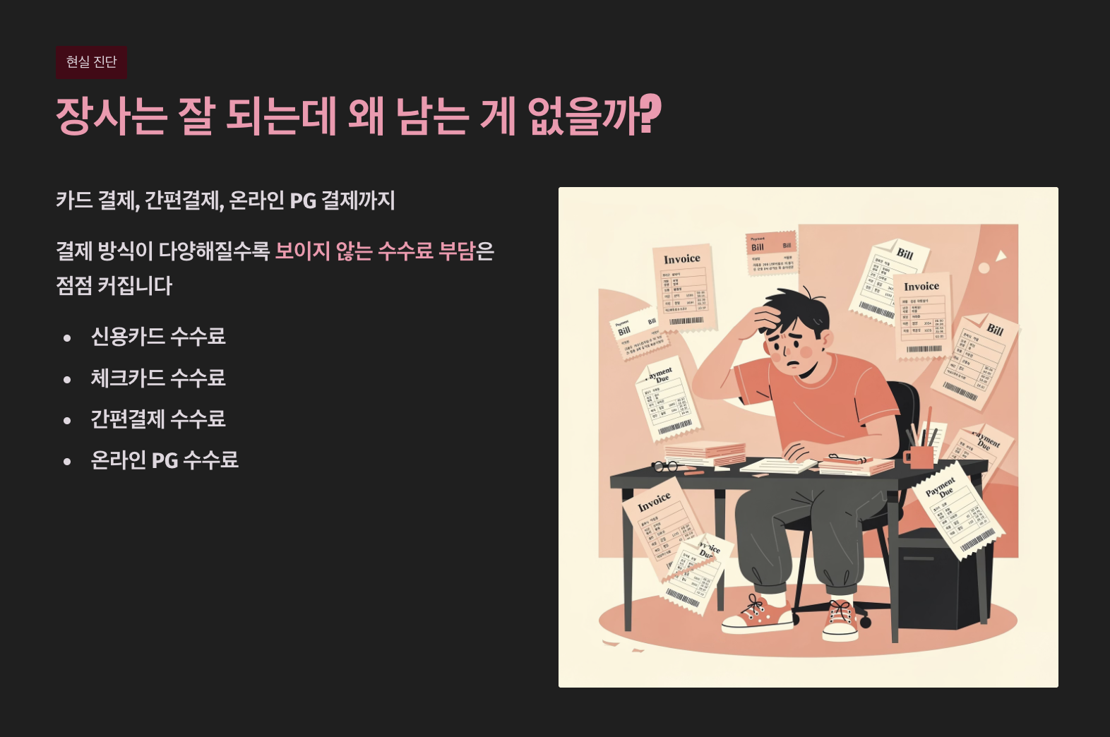 요즘 장사를 하다 보면 매출은 늘었는데 통장에 남는 돈은 그대로라는 말을 자주 듣게 됩니다. 그 이유 중 하나가 바로 전자결제 수수료입니다. 카드 결제, 간편결제, 온라인 PG 결제까지 결제 방식이 다양해질수록 보이지 않게 빠져나가는 수수료 부담은 점점 커지고 있습니다.