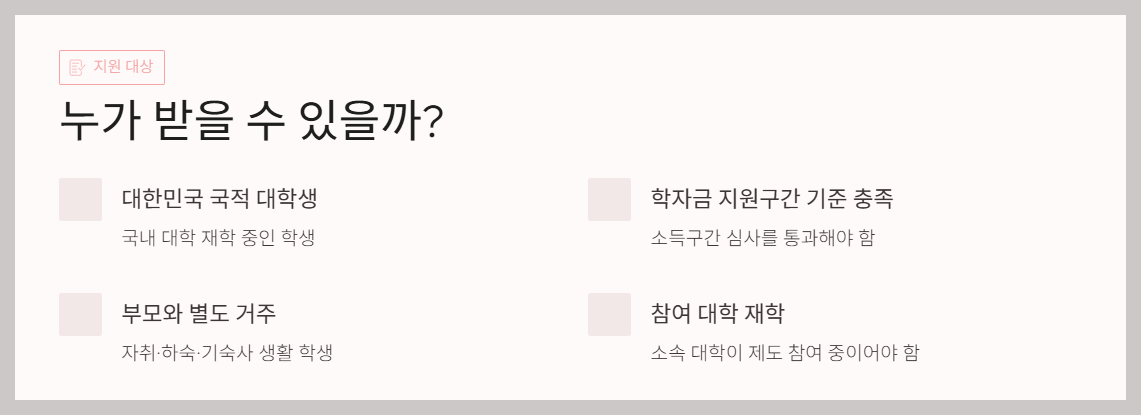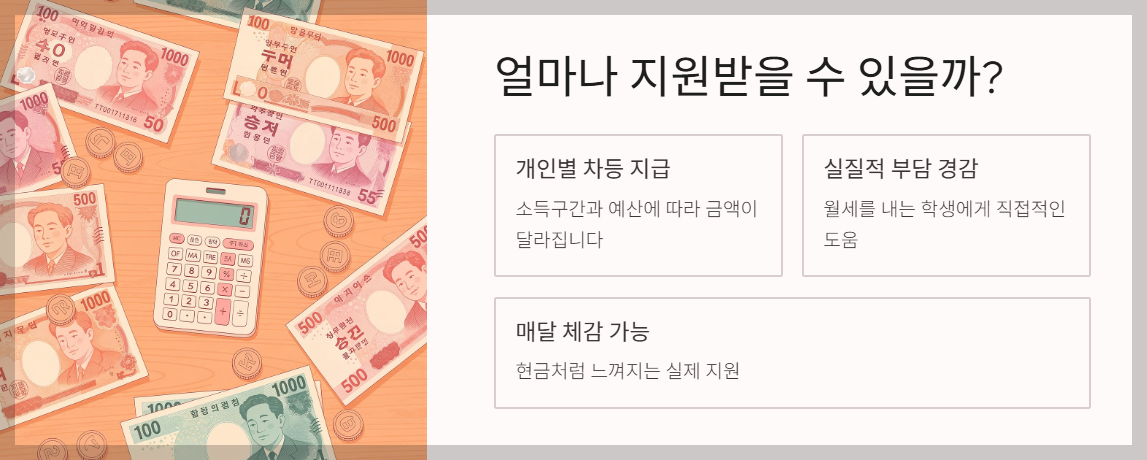 특히 월세를 내는 학생에게는 교통비·식비보다 더 직접적인 도움이 됩니다.