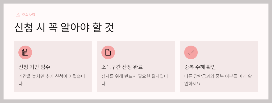 - 다른 장학금과 중복 여부 확인 필요