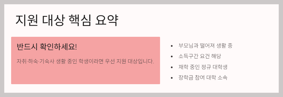 즉, 자취·하숙·기숙사 생활을 하는 학생이라면 우선적으로 확인해볼 필요가 있습니다.