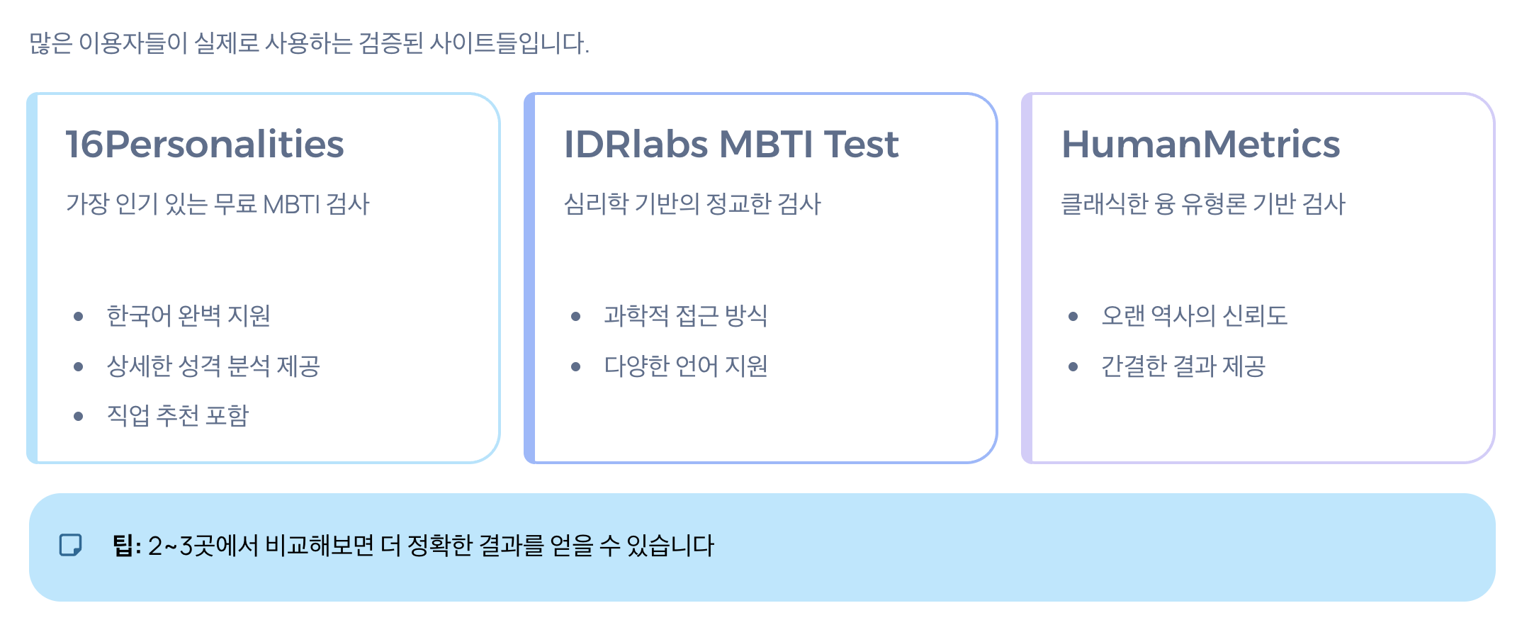 3️⃣ 추천하는 MBTI 무료 검사 사이트